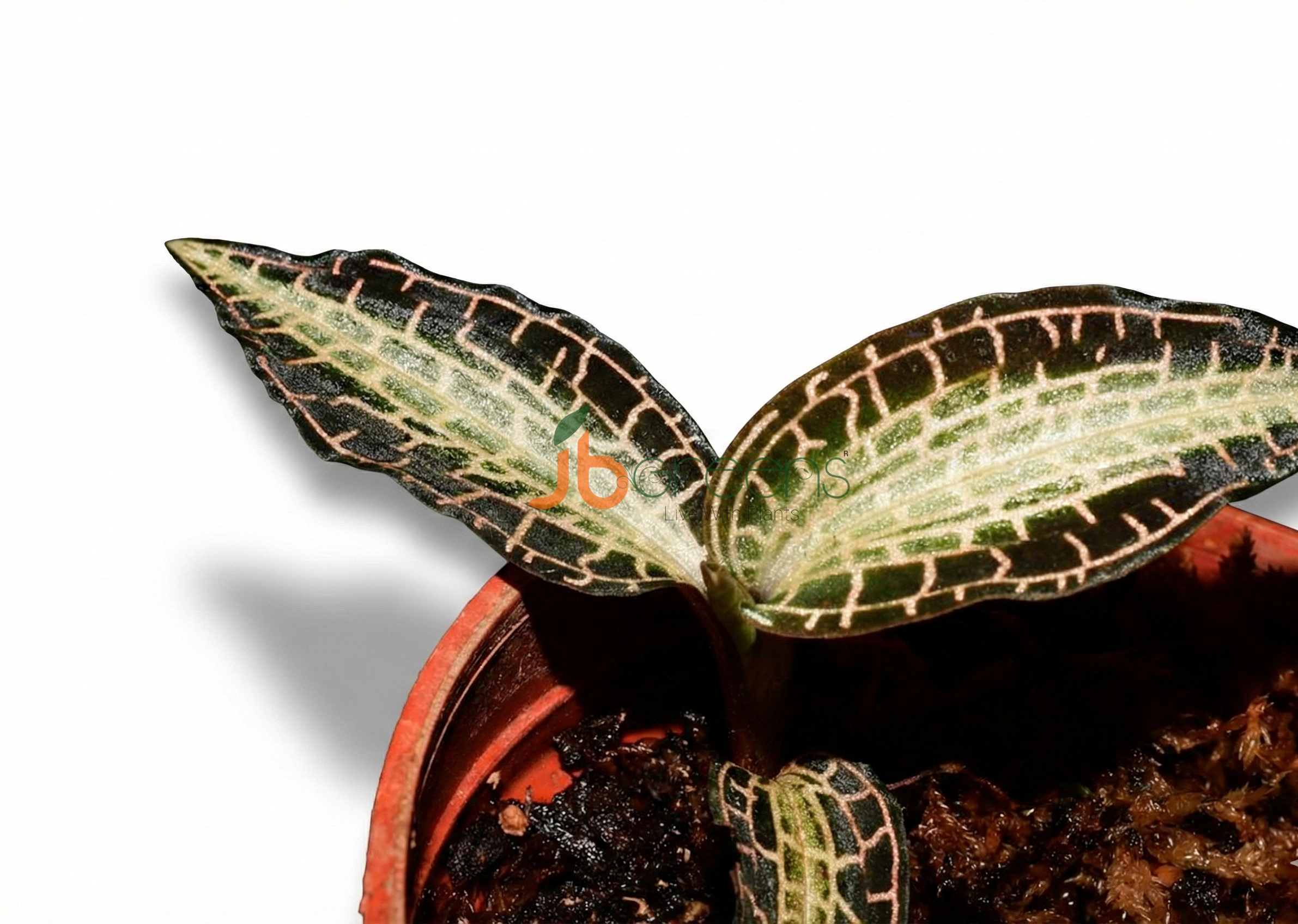 Goodyera pusilla (Jewel Orchid) is a small, terrestrial orchid with distinctive patterned leaves and small white flowers. It prefers shaded, humid environments with well-draining organic soil and stable moderate temperatures. It adapts well to indoor or greenhouse cultivation and requires gentle care to maintain moisture without waterlogging.